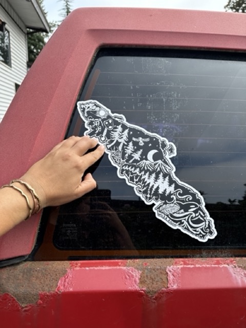 Large Vancouver Island sticker/decal! 15″ long x 5″ wide, this high quality vinyl sticker will last for years, and leave no residue or damage when you want to take it off. waterproof and weatherproof it will look so sweet on a car, camper, or any clean dry surface!